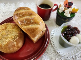 甘いパン、ハードパン、ゼリーとバランス良いメニューで、とっても美味しくできあがりました